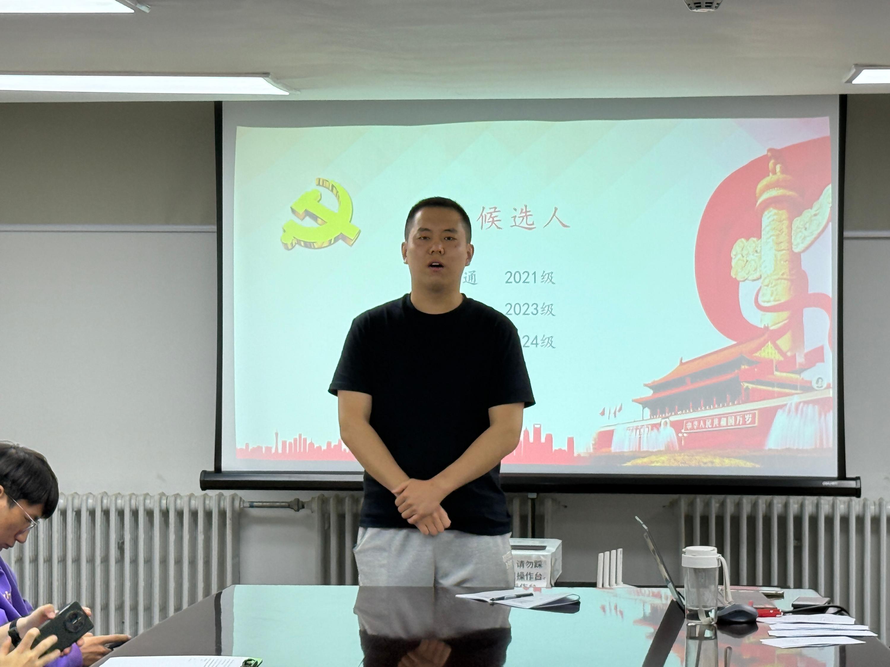 大会严格按照组织程序,选举产生首届研究生党支部委员会。经过民主投票,苏宇通同志当选为党支部书记,王志超同志当选为党支部副书记,赵冰珂同志当选为支部委员。新当选的党支部书记苏宇通同志代表支部全体党员表态,将坚持以习近平新时代中国特色社会主义思想为指导,扎实做好党员教育管理工作,打造学习型、服务型、创新型党支部。