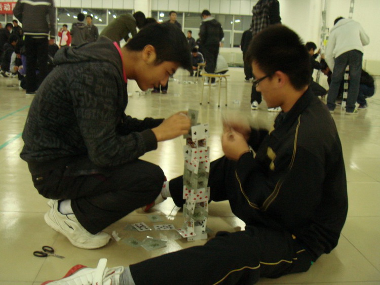 为了弘扬科学精神,激发科学兴趣,培养同学们动手、动脑能力和创新精神,11月15日晚19:00,由米乐mile官方网站科技创新协会主办的趣味扑克牌搭塔比赛在高密校区惠众餐厅二楼举行。